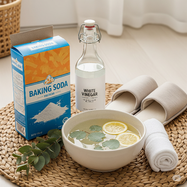 활용법: 베이킹소다 1스푼 + 물 + 식초를 혼합해 거즈에 적신 후 발에 10분간 올립니다.